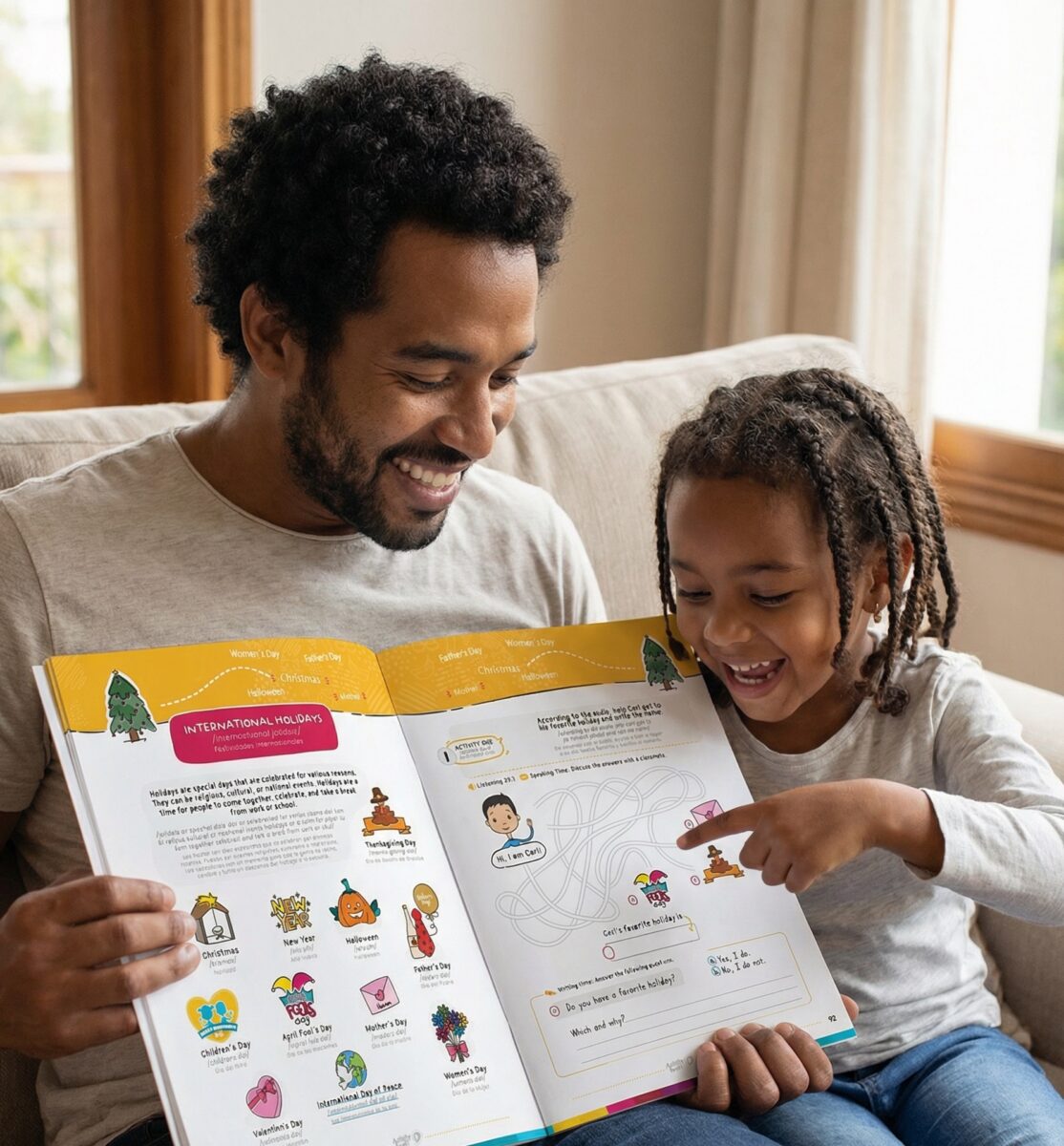 Contenido estructurado para un progreso sencillo para que tu hijo avance a su propio ritmo. Vocabulario claro y estructura de temas fácil de entender. Una página te introduce en el tema con texto en inglés, pronunciación y traducción al español, seguida de dos páginas con actividades para consolidar lo aprendido.
